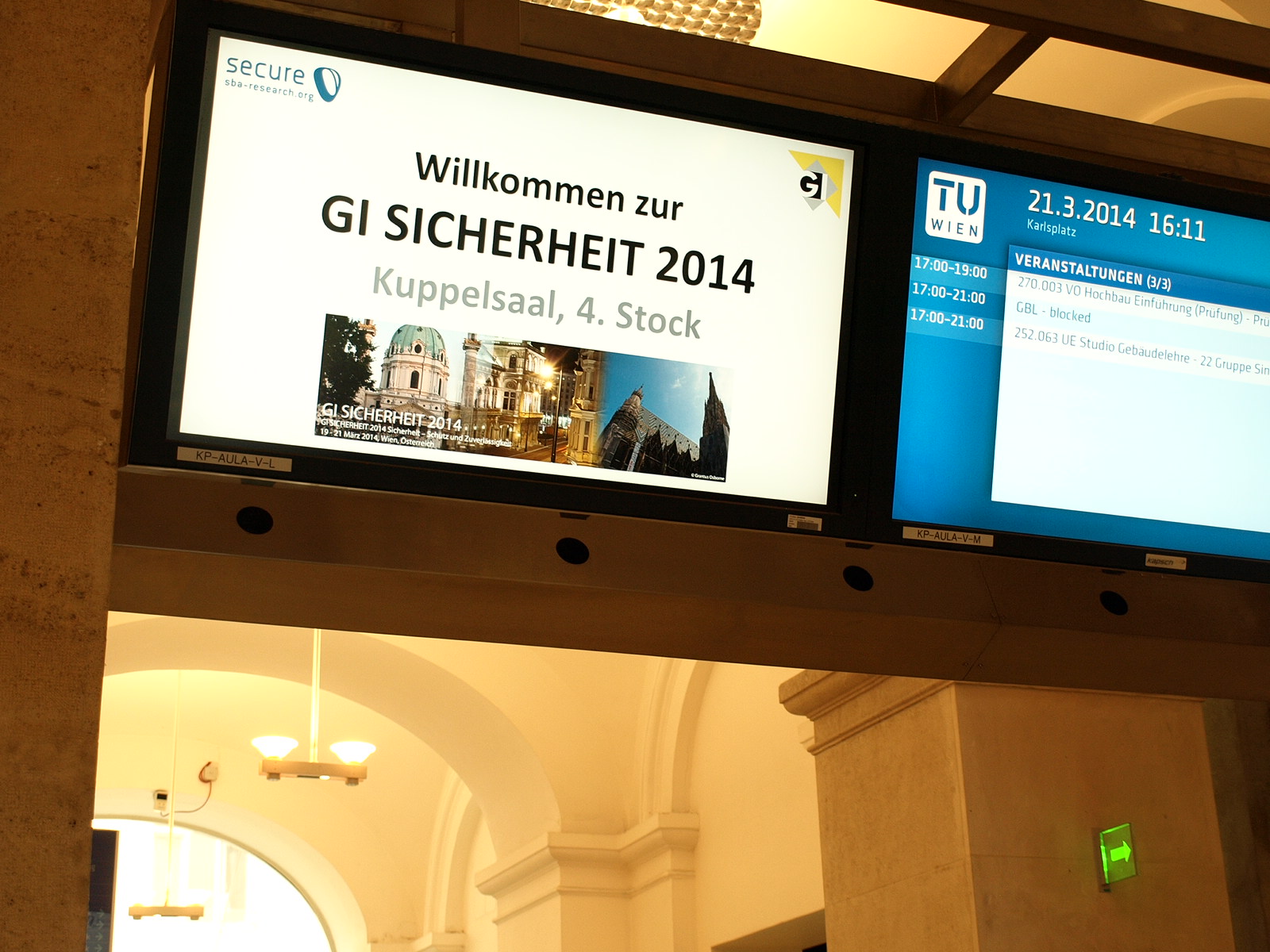 Wir danken allen TeilnehmerInnen der GI SICHERHEIT 2014 für drei interessante und spannende Tage in Wien! Den Proceedings-Band der SICHERHEIT 2014 gibt es hier zum Download: Proceedings GI SICHERHEIT 2014
